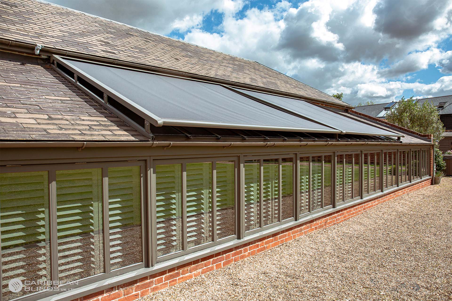 The Cayman outdoor roof blind is a premium solution for shading glazed roofs, skylights, conservatories, and roof lanterns.