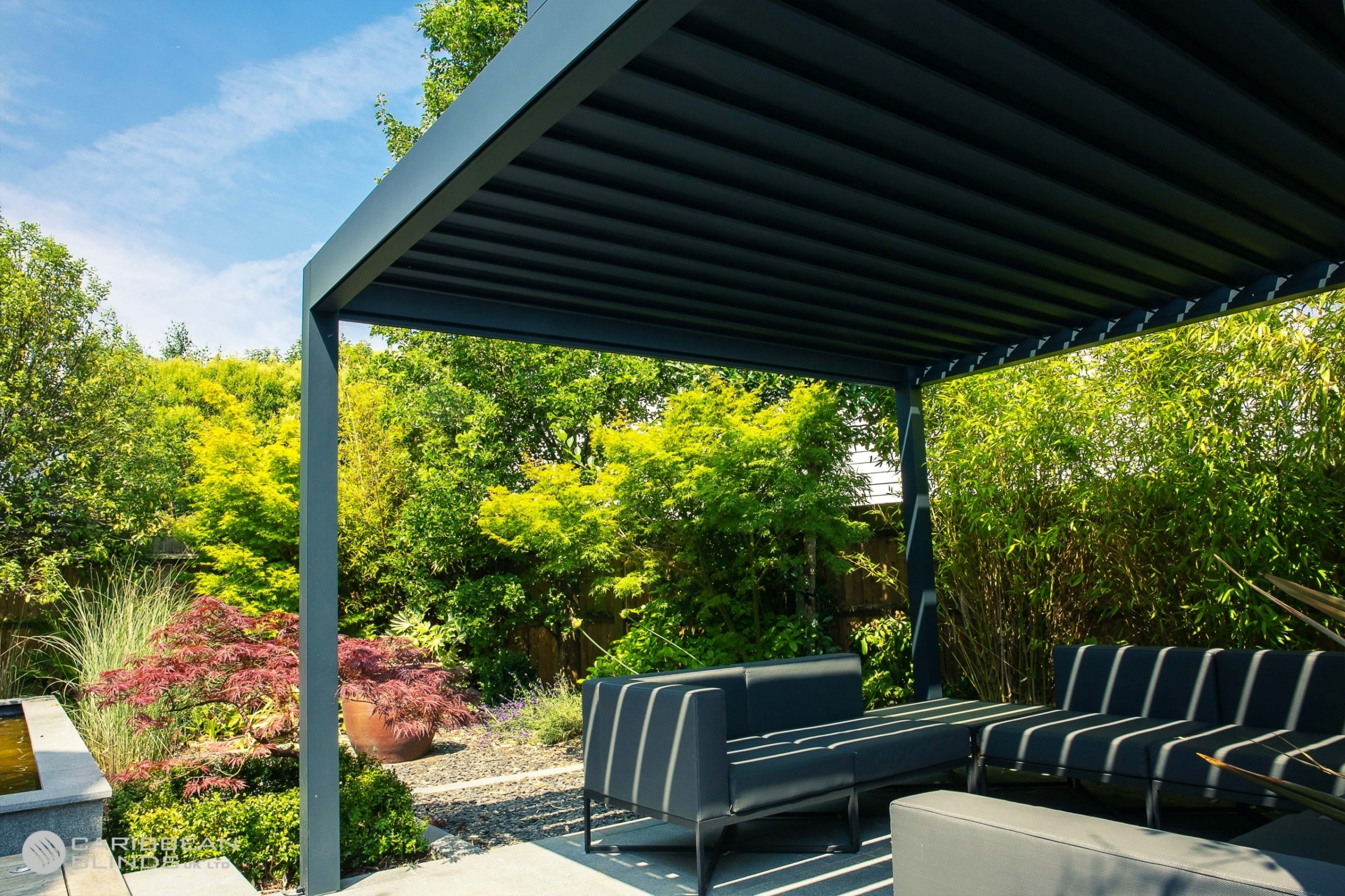 - With optional side screens, lighting and heating, it creates a comfortable, sheltered space for relaxing, dining or entertaining outdoors.